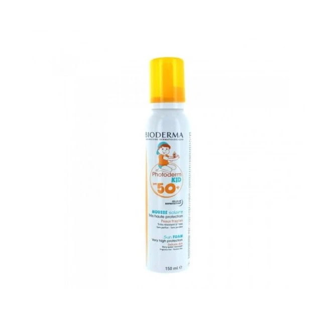 BIODERMA PHOTODERM KID MOUSSE SPF50+ 150ML-mousse ad altissima protezione solare ideale per i più piccini. Questa schiuma solare è altamente resistente all’acqua e, grazie all’esclusiva combinazione di filtri UVA / UVB e la protezione dei brevetti delle cellule bio, offre ai bambini una protezione ottimale contro danni UV.
