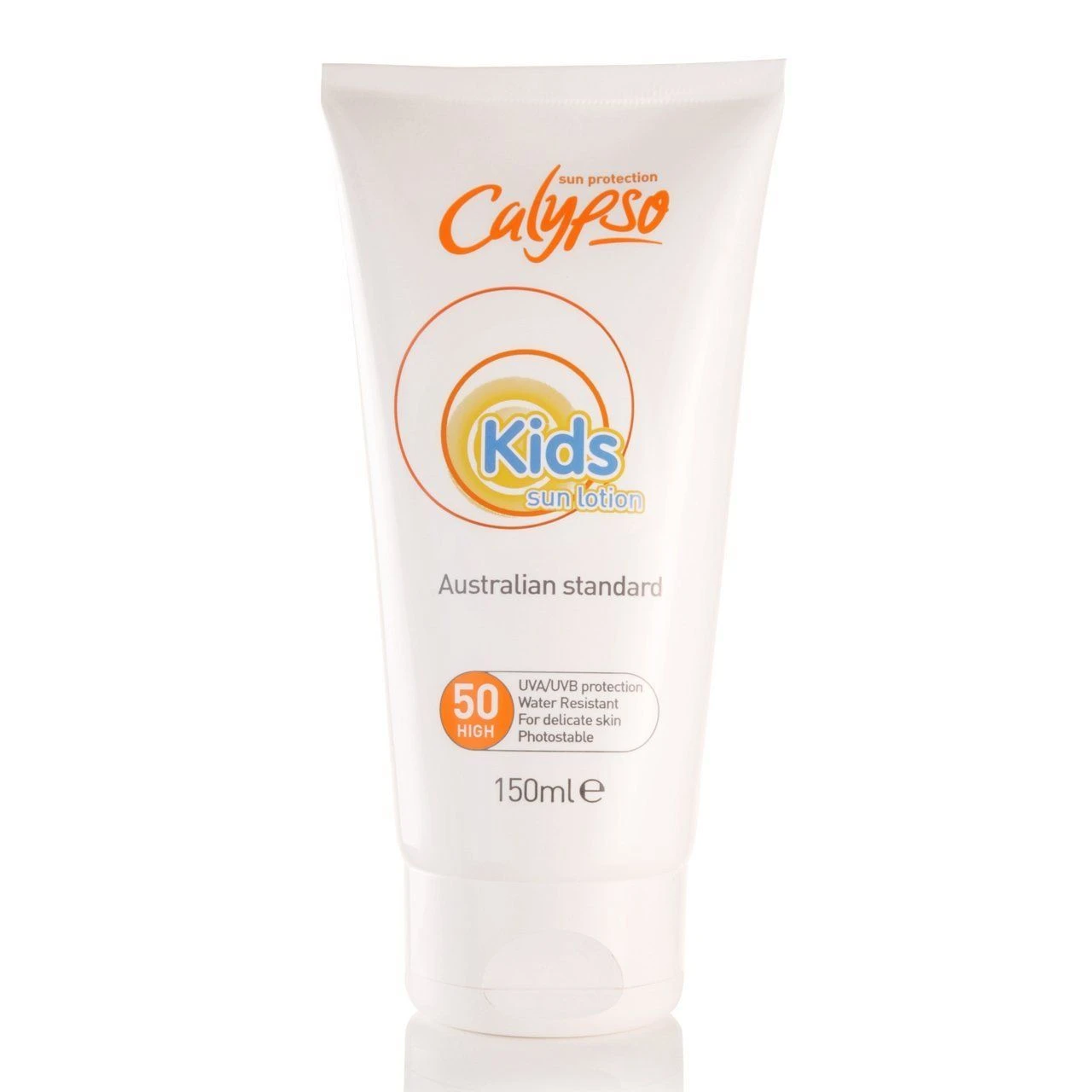 Calypso Kids Sun Lotion Crema solare per bambini SPF50 150 ml Ottimo rapporto qualità prezzo. Si asciuga facilmente – il profumo è buono e non si spende un capitale per proteggersi.