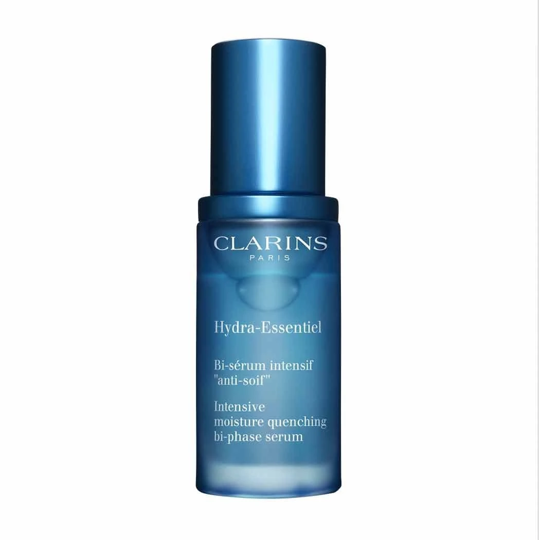 Clarins Hydra Essentiel Bi-Serum Anti soif Siero Viso 50 ml. Morbido e impalpabile, il Siero Bifase restituisce alla pelle più disidratata morbidezza, tono, luminosità e bellezza in ogni occasione.