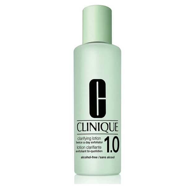Clarifying Lotion 1.0 Twice A Day Exfoliator – Esfoliante Viso 400 ml. Libera con delicatezza la superficie cutanea dalle cellule devitalizzate e rivela una pelle più fresca e vitale. Quando lo strato di opacità e cellule morte è stato rimosso, i trattamenti successivi penetrano con maggior facilità nella cute dove esplicano la propria azione con maggior efficacia. La pelle appare più morbida, levigata e più radiosa. Clarifying Lotion 1.0 ammorbidisce le linee sottili, per aiutare la pelle a rivelare un aspetto più giovane, più a lungo. Ideale per il Tipo di Pelle 1 – da Molto Arida ad Arida. Priva di alcool per pelle sensibile e delicata. Passare con un batuffolo di cotone su viso e collo una sola volta due volte al giorno, dopo la pulizia con Clinique Facial Soap – Sapone Viso o Extra Gentle Cleansing Foam ideale per pelli sensibili. Evitare la zona del contorno occhi.