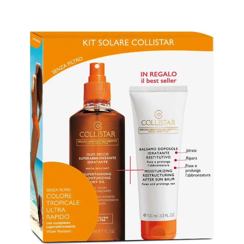 Collistar Kit Olio Secco Superabbronzante Idratante Water Resistant + Balsamo Doposole Idratante Restitutivo