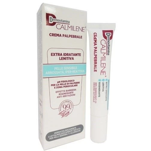 Dermovitamina Calmilene Crema Palpebrale Extra Idratante 15ML – Crema palpebrale per pelle sensibile, arrossata e iper-reattiva – effetto barriera rigenerante anti irritazioni . 99% ingredienti di origine naturale.