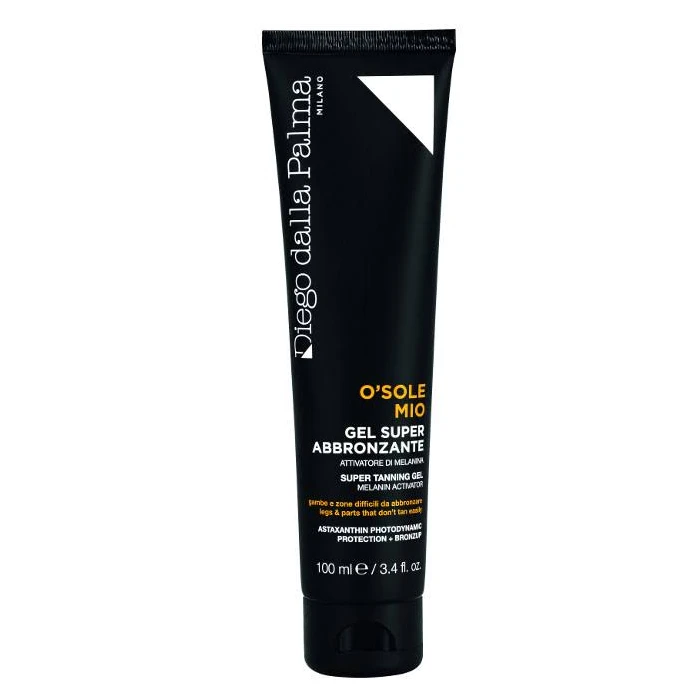 Diego Dalla Palma O’Sole Mio Gel Super Abbronzante Gambe 100 ml. Ultra concentrato in BRONZUP. Intensifica e velocizza l’abbronzatura, per un colorito uniforme e duraturo. Gel fresco, non unto e di rapido assorbimento, arricchito con micro perle riflettenti per donare una luminosità immediata all’incarnato.