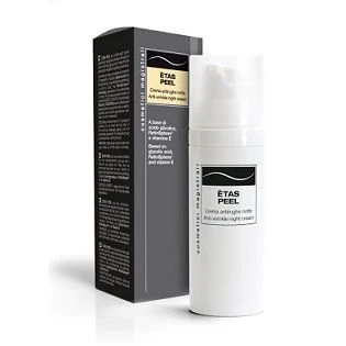 ÈTAS PEEL Crema antirughe notte appositamente studiata per ridurre i segni dell’invecchiamento fotoindotto e per rendere la pelle particolarmente recettiva ai trattamenti peeling. Modalità d’utilizzo Applicare alla sera una piccola quantità (1-2 pump) di prodotto sul viso deterso e asciutto. Massaggiare delicatamente fino a completo assorbimento. È consigliabile utilizzare un fotoprotettore durante il giorno. Il prodotto è confezionato in un innovativo tubo airless per preservare l’integrità e l’efficacia del prodotto. Componenti Acido glicolico, retinsphere e vitamina E. Avvertenze Uso esterno. Evitare il contatto con gli occhi. Tenere fuori dalla portata dei bambini. Formato Flacone airless da 50 ml. Cod.20815757