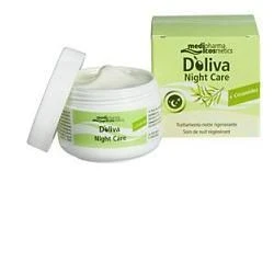 Doliva Night Care CREMA NOTTE Modalità d’uso: applicare la sera prima di andare a letto. Caratteristiche: durante la fase ristrutturante del sonno la pelle del viso assorbe in maniera più efficace i complessi di sostanze attive contenuti nella crema rigenerante. La sua formula speciale, a base di olio d’oliva spremuto a freddo e prezioso latte di mandorla è perfetta per la notte. Arricchita con vitamina E, acido ialuronico e olio di mandorla, rigenera la pelle durante la notte. Le piccole rughe si attenuano, mentre la cremosa fragranza del latte di mandorla regala una sensazione di intenso benessere.