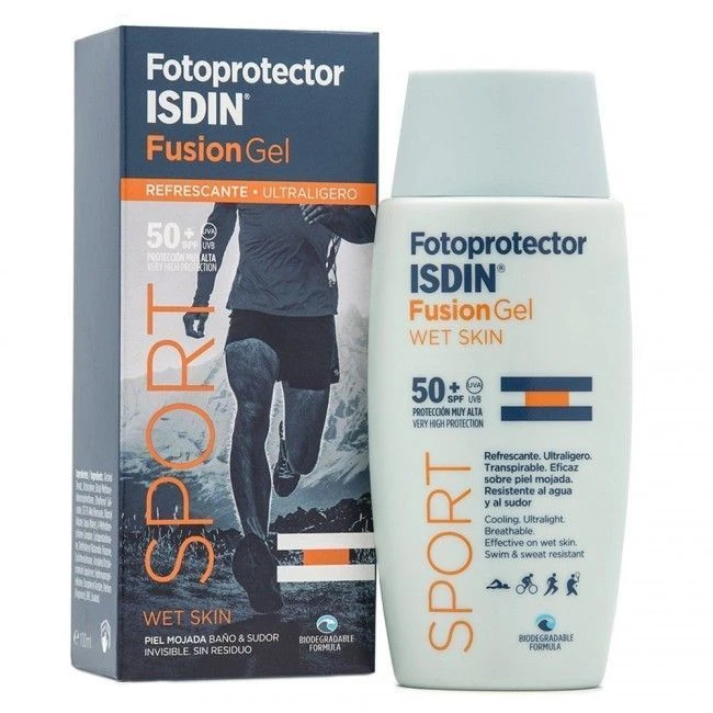 Isdin Fotoprotector Fusion Gel Sport 50+ 100ml -La protezione solare ideale per praticare sport all’aria aperta.Perfetto per gli uomini, nelle zone con i peli e il cuoio capelluto.Fusion Gel dona un’immediata sensazione di freschezza che ripristina la naturale temperatura corporea durante gli allenamenti (“effetto di raffreddamento”).Inoltre, offre una formulazione che si adatta alla pelle, ultra-leggera e lascia respirare la pelle, e si può applicare anche sulla pelle bagnata.La sua texture lo rende facile da applicare e viene assorbito all’istante.