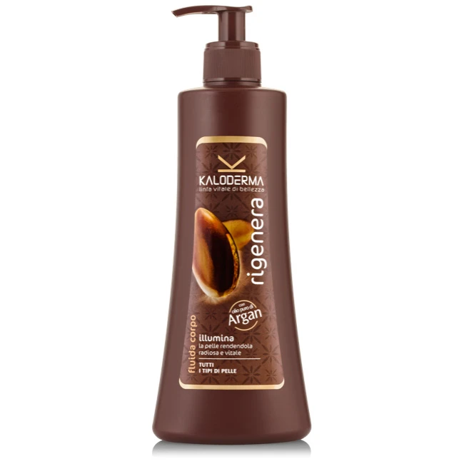 Kaloderma amplia la linea all’olio di Argan, completa la linea nutriente e rinnova completamente la linea viso.Linea all’Olio di Argan: Dopo il lancio di due prodotti specifici come il burro di argan e l’olio puro di argan, Kaloderma arricchisce la sua linea con tre prodotti di maggior fruibilità, caratterizzati come sempre da formule preziose ed ad alto contenuto di olio di argan. Crema Fluida di Argan: stimola il rinnovamento cellulare e protegge la pelle da aggressioni esterne, aiutandola e rimanere giovane.La sua formula ricca ma non unta, a base di olio purissimo di argan rende la pelle elastica, donandole nutrimento intensivo e un tocco di seta.Con la sua formula a base di Olio purissimo di Argan nutre intensamente donando morbidezza e luminosità a tutti i tipi di pelle, anche alle più secche. Illumina la pelle regalandole un tocco vellutato ed una straordinaria sensazione di morbidezza e benessere che dura a lungo. Per ottenere il massimo effetto di morbidezza e nutrimento stendi la Kaloderma Fluida Corpo Rigenera su tutto il corpo mattina e sera o in qualsiasi momento la pelle ne abbia bisogno. Grazie alla sua texture ricca ma non untuosa e alle proprietà dell’Olio di Argan, la tua pelle sarà straordinariamente luminosa e vitale.