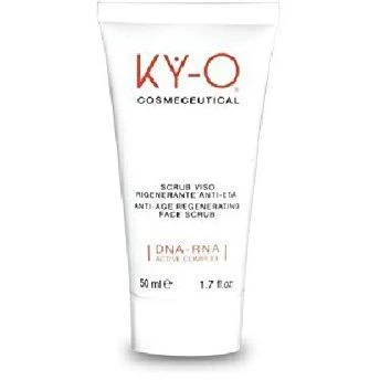 KY-O Cosmeceutical Scrub Viso Rigenerante Anti-Età. Formula esclusiva, dalla texture ricca e corposa, ideale per rinnovare l’epidermide nel completo rispetto dei suoi equilibri. Grazie all’efficacia dell’esclusivo mix di attivi DNA-RNA COMPLEX, arricchito da Vitamine in sinergia con preziosi ingredienti naturali funzionali, esplica un’azione esfoliante rimuovendo le cellule morte dell’epidermide e stimolandone il naturale turn over. Attenua le linee sottili, dona morbidezza e uniformità. Risultato è una pelle compatta, vitale, recettiva e luminosa.