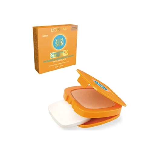 L’Oreal Sublime Sun compatto solare spf 30 viso e decollete’ tonalita’ universale Pelle abbronzata, opacizzata e protetta in un solo gesto.