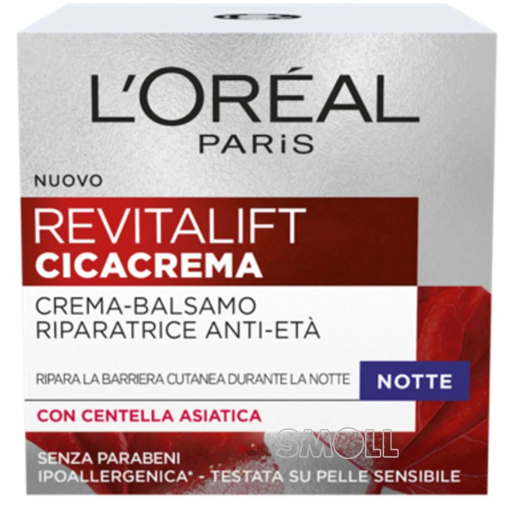 L’Oreal revitalift Cicacrema crema balsamo riparatrice anti età antirughe notte con centella asiatica, senza para-beni, ipo-allergenica, adatta a tutti i tipi di pelle, anche quelle sensibili. Una pelle più bella oggi, una pelle più giovane domani!