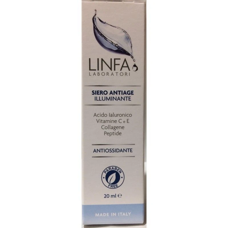 Linfa siero antiage illuminante 20ML- con acido ialuronico, vitamina C, e collagene.Antiossidante