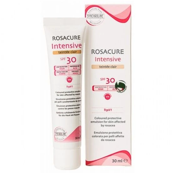 ROSACURE INTENSIVE TEINTEE CLAIRE :Emulsione protettiva colorata da utilizzare sul viso per la protezione delle pelli caratterizzate da rosacea nella fase eritemato-teleangectasica (couperose) e papulo-pustolosa. pplicare mattino e sera su cute detersa. Se è necessaria una rapida azione lenitiva, applicare in combinazione il prodotto ROSACURE Fast la sera.