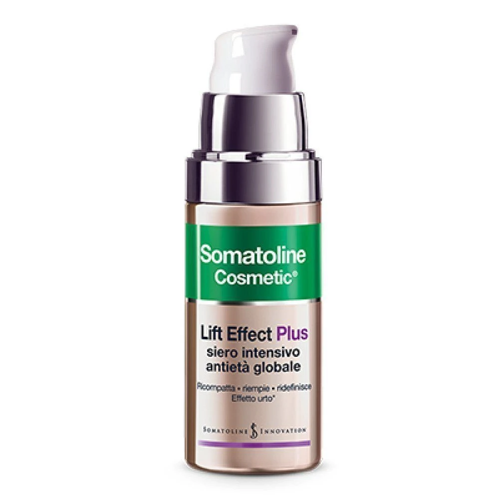 Somatoline Cosmetic Lift Effect Plus Antietà Globale Siero 30ml- Il trattamento antietà globale di Somatoline Cosmetic ad azione ridensificante urto per ricompattare, riempire e ridefinire i contorni del viso. Un’emulsione fluida dalla texture setosa a rapido assorbimento. Ideale da applicare nei momenti in cui la pelle è più stressata.